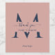 Thank your guests for sharing in your special day with bottles of wine featuring personalised navy blue and blush wedding thank you wine labels with a modern script font. Easily personalise online. Matching items available to complement these elegant monogram wedding wine labels.