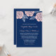 Modern Navy Blue and Blush Pink Rose Wedding Invitation