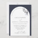 Modern Navy Blue Arch Botanical Photo Wedding Invitation