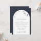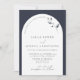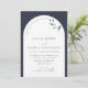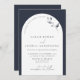 Modern Navy Blue Arch Botanical Script Wedding Invitation