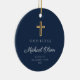 Modern Navy Blue Boy Baptism Photo Ceramic Ornament.