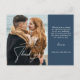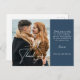 Modern Navy Blue Calligraphy Photo Wedding Postcard