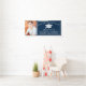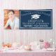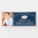 Modern graduation party banner featuring a stylish navy blue background that can be changed to the colour of your choosing. Personalise this custom design with your own photo, name, school name and graduation year.