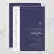 Custom Modern Navy Blue Cross First Holy Communion Invitation.