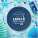 Custom round graduation paper plates features a navy blue and white design (can be modified via "Customise It!") with a graduation cap and custom text for the grad's name and class year.