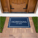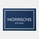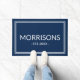 Modern Elegant navy blue and white custom name text date double thin border modern doormat