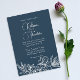 Elevate your wedding announcement with this modern and elegant invitation. Featuring a stunning floral design on a navy blue background, with a mix of classic script and modern typography, this invitation is fully customisable to fit your needs. Whether you want to add your own personal touch or adjust the design to match your wedding theme, this invitation is the perfect way to impress your guests and set the tone for your big day.