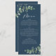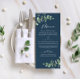 Beautiful delicate eucalyptus foliage wedding menu design. Modern elegant on trend sage green, black, navy blue and white stylish contemporary rustic collection. Ideal for spring, summer, fall, autumn or winter weddings.