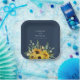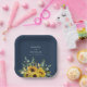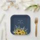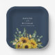 Modern Navy Blue Floral Sunflower Wedding Paper Plate