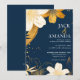 Modern Navy Blue Flower Chic Wedding Invitation