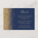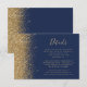 The left-hand edge of this elegant modern wedding details enclosure card features a gold faux glitter design. The customisable text combines pale gold coloured handwriting, copperplate and italic fonts on a navy blue background. The reverse side features a matching navy blue and gold glitter design.