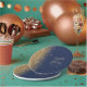 The left-hand edge of these elegant modern wedding paper plates features a gold faux glitter design. Personalise them with the names of the bride and groom in pale gold-coloured handwriting script over a large ampersand on a navy blue background, with the wedding date below.