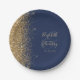 Modern Navy Blue Gold Glitter Edge Wedding Paper Plate