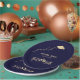 Elevate your graduation celebration with these stylish navy blue paper plates featuring a gold grad cap symbol, the word graduate in gold script, your name and class year, and a delicate gold floral design.