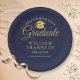 Modern Navy Blue Gold Graduation Party Paper Plate