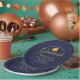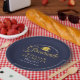 An elegant graduation party paper plate featuring your grads details set in chic typography on a navy blue background. Designed by Thisisnotme©