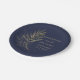 Modern Navy Blue Gold Leaf Wedding Monogram Paper Plate