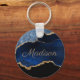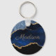 Modern Navy Blue Gold Marble Glitter First Name Key Ring
