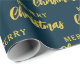 Modern Navy Blue Gold Merry Christmas Script Wrapping Paper