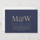 Modern Navy Blue Gold Monogram Wedding Invitation