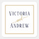 Modern Navy Blue Gold Script Minimal Wedding Square Sticker