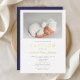 Modern Navy Blue Gold Script Photo Boy Baptism
