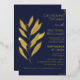 Modern Elegant Navy Blue Gold Foil Leaf design.