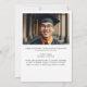 This modern navy blue custom senior graduate announcement card features your high school or college name for the class of 2025 above your favourite senior portrait photo. Customise with your graduating year under the chic handwritten script and grey grad cap for great personalised graduation photograph announcements. Add a 2nd picture on the back along with personal details.