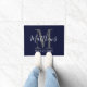 Modern Navy Blue Grey Monogram Newlyweds Wedding Doormat