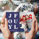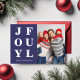 Modern Navy Blue Joyful One Photo Christmas Holiday Card.