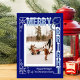 Modern Navy Blue Merry & Bright Retro Typography Holiday Card