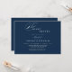 A modern, clean, and sleek Night Before Rehearsal Dinner announcement adorned with a swirling wisp of calligraphy against a navy blue creates the perfect announcement for family and friends. Easily customise the front and back with your personal details to make it your own.