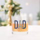 Featuring title "DAD" in navy blue and grey modern bold sans serif font style, with established year.