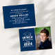Announce your high school or college graduate in style with this graduation announcement and party invitation. Two-sided card features a senior portrait of the graduate with grad cap and simple and modern white typography design. Navy blue background can be changed to a different colour with the "Customise It" feature, then Edit / Background to select another colour.