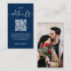 This chic navy and white wedding details card combines a deep blue background with a refined script and a romantic couple’s portrait. The modern QR code makes accessing event details easy. Personalise text and layout effortlessly on Zazzle for a perfect finishing touch.