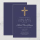 Modern Navy Blue Religious Boy First Communion Invitation.