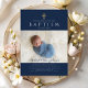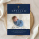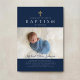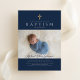 Modern Navy Blue Religious Cross Boy Baptism Photo Invitation