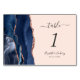 Modern Navy Blue Rose Gold Agate Blush Wedding Table Number