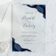 Modern Navy Blue Rose Gold Agate Corners Wedding Acrylic Invitations
