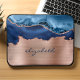 Modern Navy Blue Rose Gold Agate Metallic Laptop Sleeve