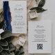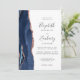 Modern Navy Blue Rose Gold Agate QR Code Wedding Invitation
