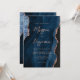 This elegant wedding invitation features a background image of navy blue watercolor agate trimmed with faux rose gold glitter. The customisable text combines rose pink modern handwriting, copperplate and italic fonts. The reverse side features a coordinating navy blue and rose gold agate design.