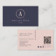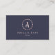 Modern Navy Blue Rose Gold Elegant Monogram Business Card