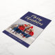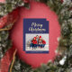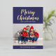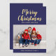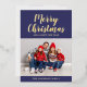 Personalized Modern Navy Blue Script Christmas Photo Gold Foil Holiday Card.