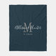 Modern Navy Blue Script Monogram Couples Fleece Blanket