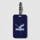 This simple, elegant navy blue luggage tag with your first name in a trendy script font in white typed over your first initial in a modern cap font in light blue on one side and a slide in card for your name, address and phone number on the other would look fabulous on your suitcases. It's stylish and trendy and yet very classic.