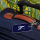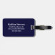This simple, elegant navy blue tag with your first name in a trendy script font in white typed over your first initial in a modern cap font in light blue on one side and your name, address and phone number on the other would look fabulous on your suitcases. It's stylish and trendy and yet very classic.