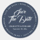 Navy blue wedding save the date stickers featuring a modern script font.