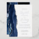 The left-hand edge of this elegant modern wedding invitation features a navy blue watercolor agate border trimmed with faux silver glitter. The customisable text combines handwriting, copperplate and italic fonts in real silver foil on a white background. The reverse side features a matching navy blue and silver agate design.