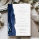 The left-hand edge of this elegant modern wedding invitation features a navy blue watercolor agate border trimmed with faux silver glitter. The customisable text combines handwriting, copperplate and italic fonts in real silver foil on a white background. The reverse side features a matching navy blue and silver agate design.